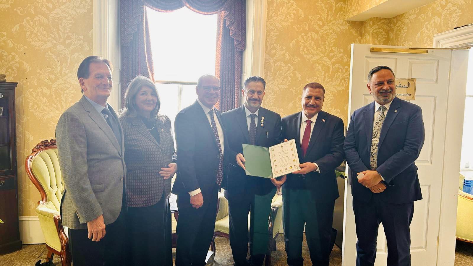 في أجواء رسمية مميّزة بالعاصمة الكندية أوتاوا، وعلى هامش زيارة الوفد الكندي إلى سفارة جمهورية العراق ولقائه بسعادة عبدالرحمن حامد الحسيني، يوم الاثنين 9 شباط 2026 قام النائب الفيدرالي Chris Lewis بتقديم وسام تتويج الملك تشارلز الثالث (King’s Coronation Pin) للسيد غسان فؤاد ساكا، تقديراً لجهوده المتواصلة في خدمة المجتمع وتعزيز العمل المجتمعي والتواصل بين مختلف المكونات في كندا.