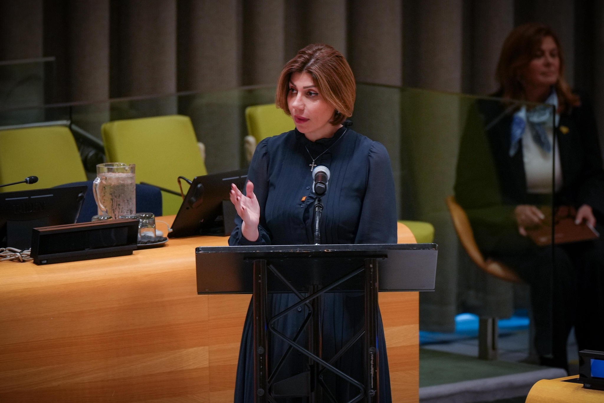 وزيرة الهجرة والمهجرين السيدة إيڨان فائق جابرو خلال إلقائها كلمة العراق في الجمعية العامة للأمم المتحدة